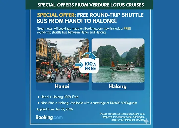 يقع ها لونغ Verdure Lotus Cruises ذو 5 نجوم على بعد 45 كم من مطار كات باي الدولي، ويوفّر خدمة النقل للمطار وتأجير السيارة ليستفيد منها الضيوف. يقع مكان الإقامة في غضون أقل من 8 دقائق مشياً على الأقدام من توان تشاو هاربور وعلى مسافة قصيرة من خليج Paradise.